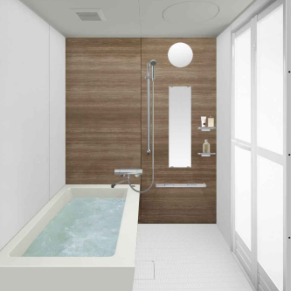 今お使いのユニットバスを、最新のユニットバスにリフォーム ・4色から選べるキープクリーン浴槽(アクリル人造大理石) ・3色から選べるキープクリーン床(大判磁器タイル) ・20色から選べるホーロークリーン壁 ・面倒なお風呂掃除を、自動お手入れオートウォシュ機能付き ・光が醸し出す、ワンランク上のくつろぎ空間、ラグジュアリーミラー ・浴室全体を保温材で包むパーフェクト保温