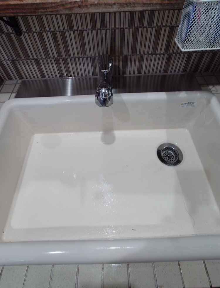 水栓回りのタイルから水が浸透しております ↓ ↓