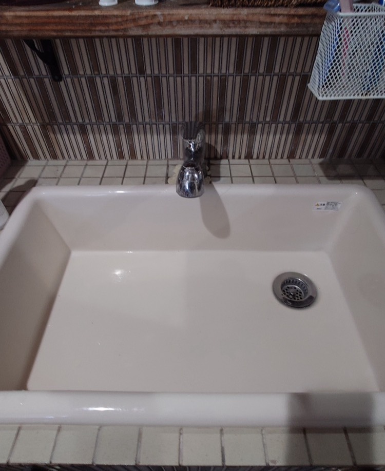 約10年前に施工させて頂いたN様ですがカッコイイ雰囲気の造作洗面台水栓が少し傷んできたので