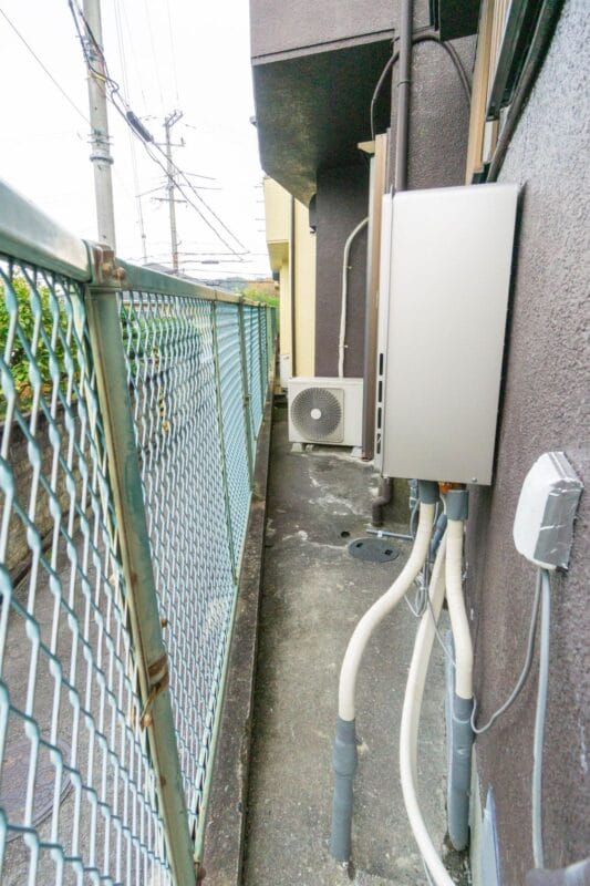 新しい給湯器はエコジョーズ。排熱も利用するため、少ないガスの量でお湯をわかせます。二酸化炭素の排出量も削減できて、SDGsに貢献できますね!
