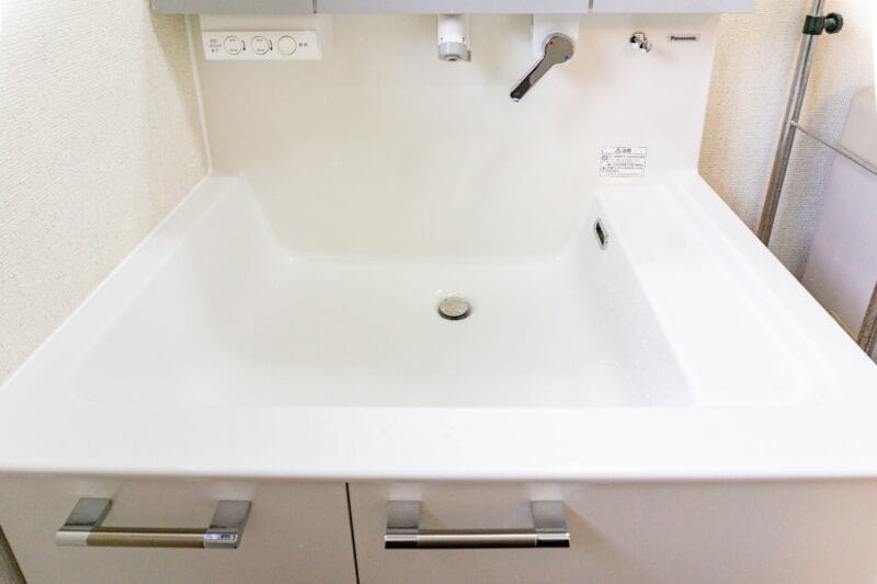 こちらにも「スゴピカ素材」が採用されています。洗面台の素材は陶器が多いですが、うっかり重たいコップを落としたりすると割れてしまうのが難点。有機ガラス系の素材は衝撃に強いため割れにくいんです。水アカもつきにくく「美しさが続く工夫を凝らした洗面台」なんですよ。
