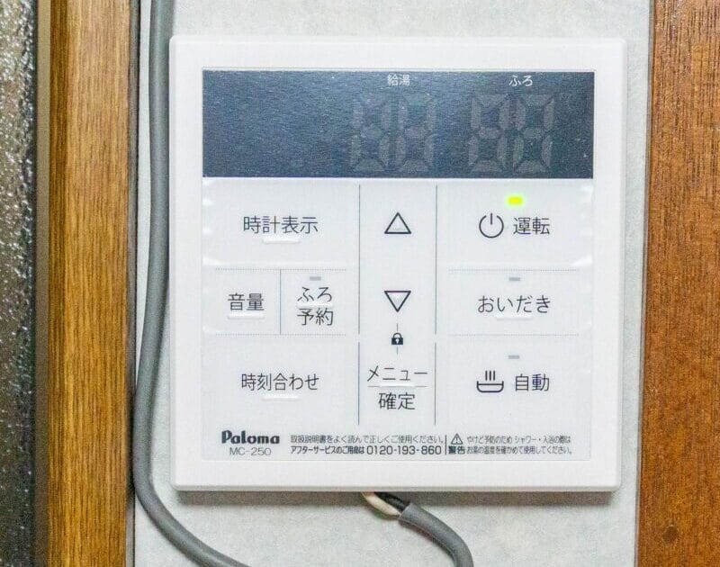 リモコンはこちら。追い焚きや湯はり予約もできるようになりました。