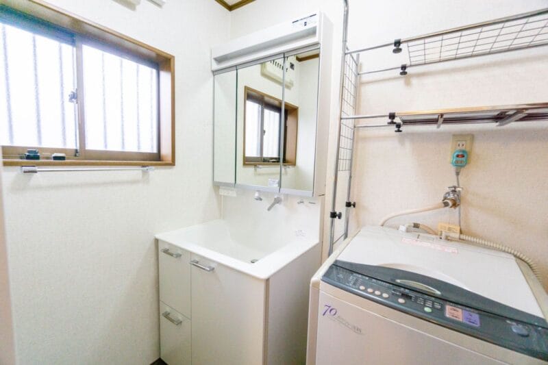 洗面台交換と同時に床や壁のクロスも張り替えるお客さまもいらっしゃいますが、今回は洗面台入れ替えのみのリフォームです。