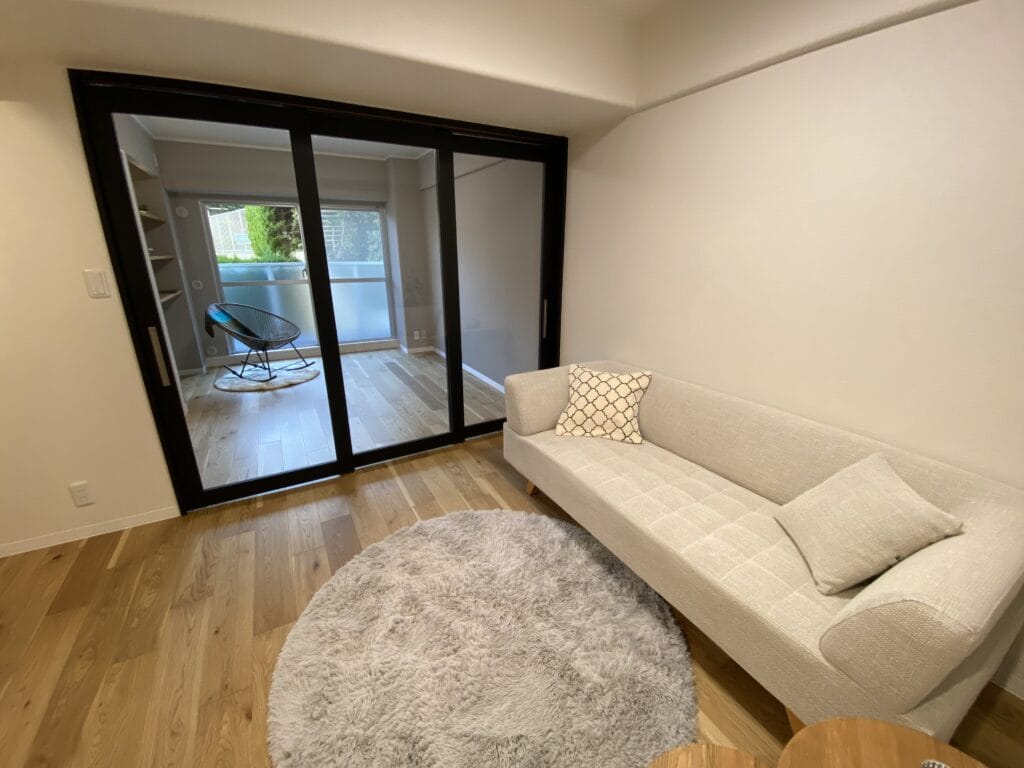 当社の施工例で何度も登場しています、リビングとの間のガラス戸。窓のないLDKに奥行きが出ます。続き部屋からの光を取り込むこともでき、明るい雰囲気に。一方で視線を遮りたい時は、スクリーンカーテンなどを下ろすだけで解決です。