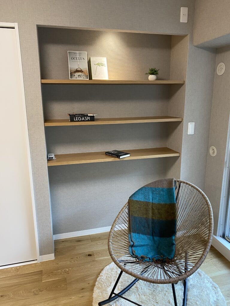 本棚にしてもいいですし、上部にダウンライトをつけたのでお気に入りのオブジェを飾っても見栄えしそうです。