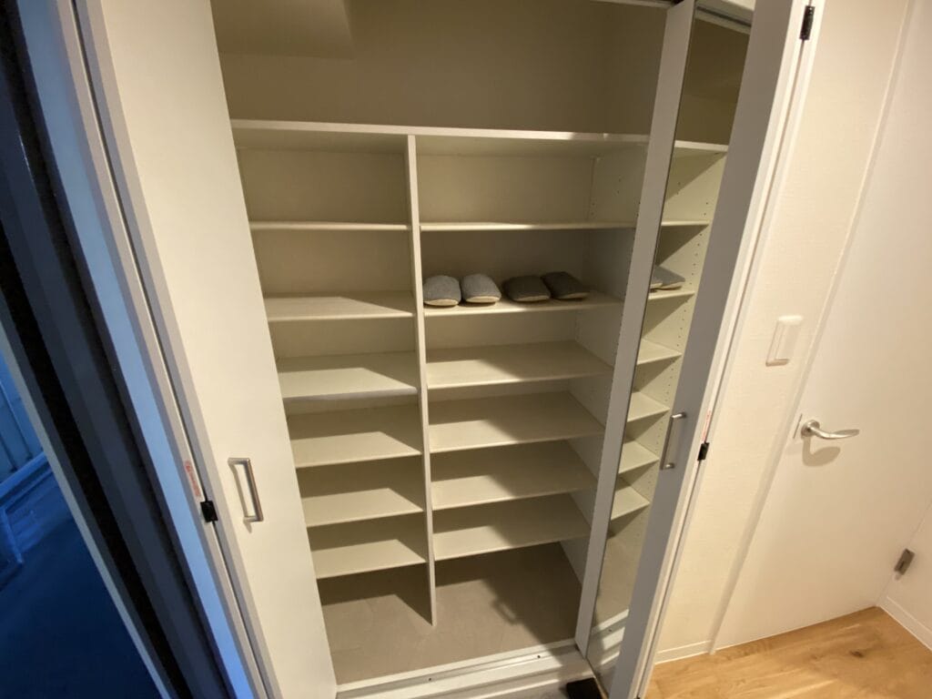 一方、壁隣の洋室にある収納スペース(クローゼット)の奥行きは、押入れほど深くありません。使い勝手を考慮したと考えられますが、余ったスペースが和室側の板の間になったようです。