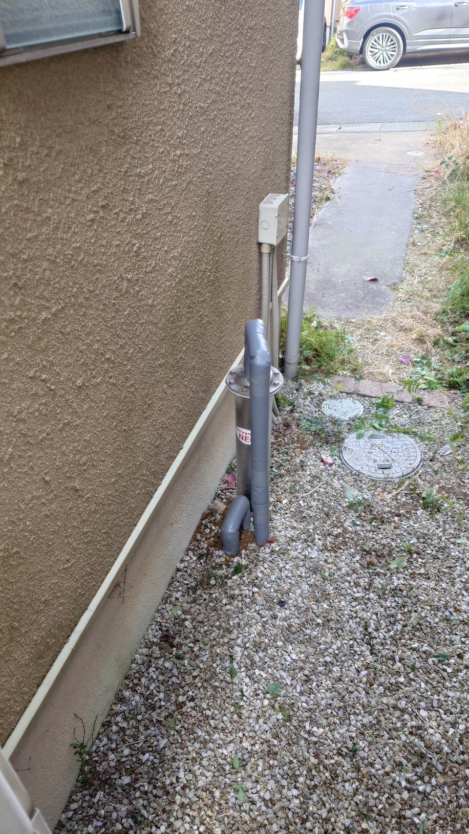 外部の給水管に繋ぎ活水器取付ました♪