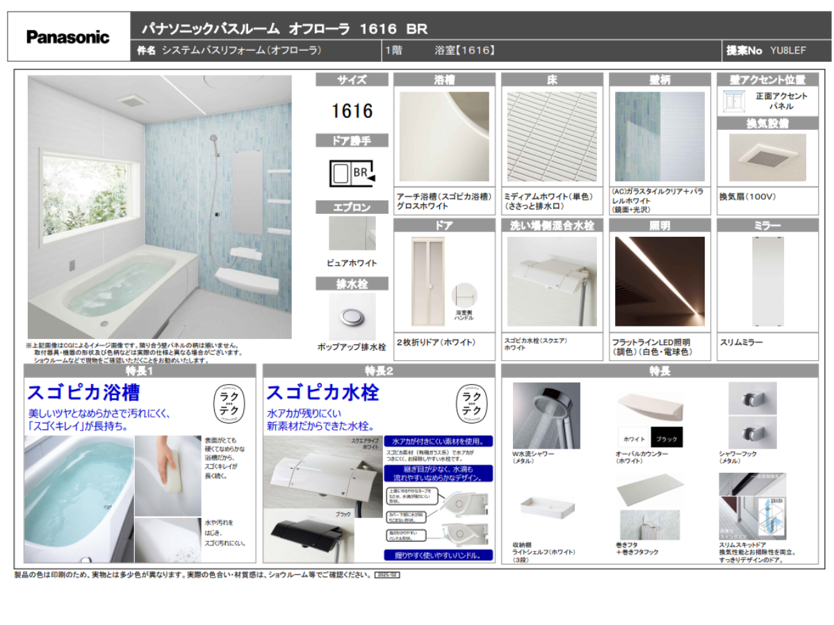 ・汚れが付きにくく、掃除の楽々なスゴピカ浴槽