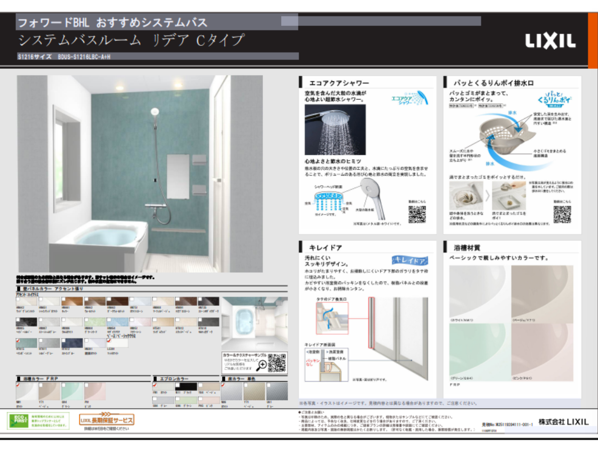 ・21色のアクセント壁パネル、4色の浴槽、3色の床から自分好みの浴室がつくれる
