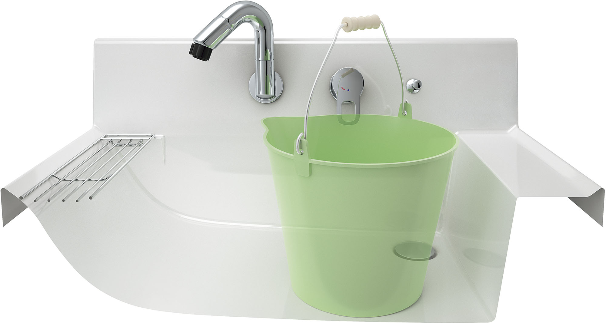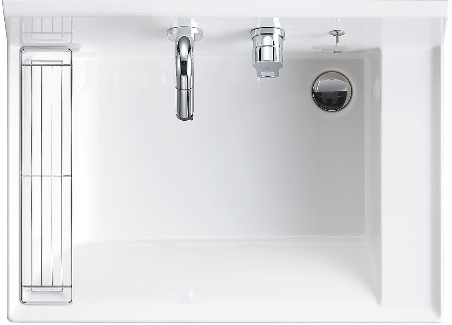 ・底が広くて大容量のボウルは、洗面も洗い物も楽々