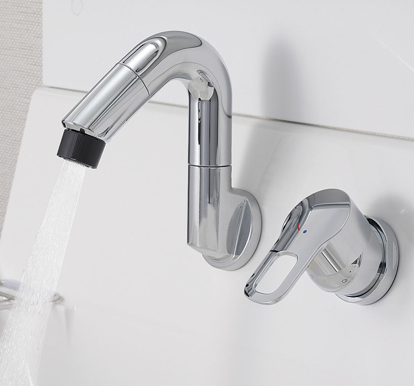 ・水栓は、左右に180度回転、引き出せて、シャワー吐水と整流に切り替え可能